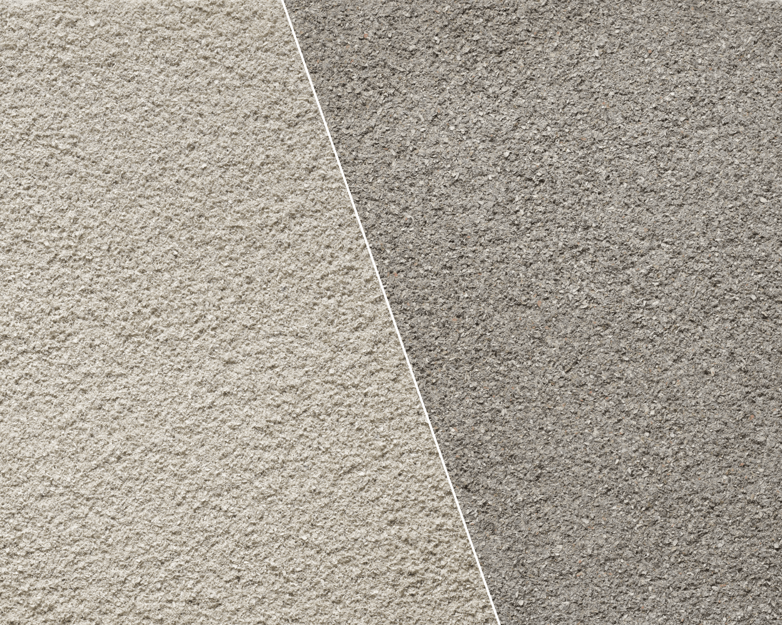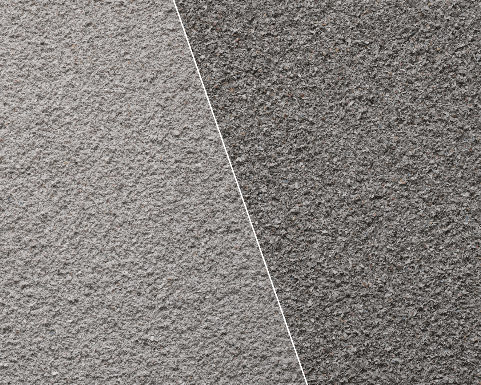 The DC2 range offers a perfect balance between acoustic comfort and aesthetics. With a medium grain texture, DC2 sits between the refined finish of Acoplaster and the more expressive texture of DC3. India Yellow (left) is a warm, soft sand tone with a subtle yellow undertone. It adds natural warmth and pairs beautifully with light woods and earthy materials. Ideal for interiors where calm, comfort and a welcoming atmosphere are desired. Hong Kong Grey (right) is a cool mid-grey with a subtle nuance that highlights the material’s recycled origin. The look is modern and understated, well suited to corporate, industrial or minimalist environments.
